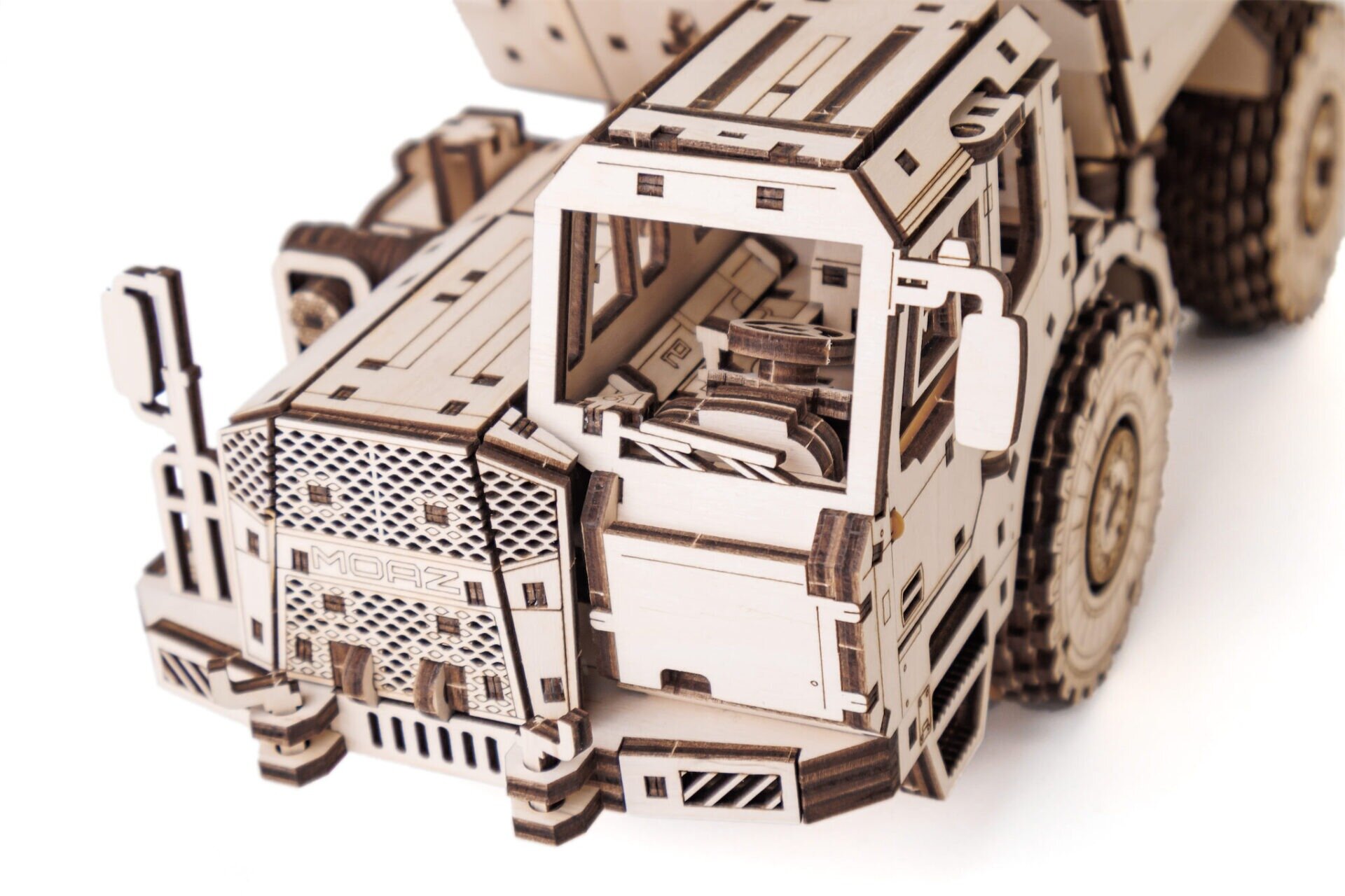 Puidust mudel MoAZ‑75053 kujutab endast ainulaadset kombinatsiooni realistlikest ehitusseadmetest ja täpselt nikerdatud puidust puslest. See muljetavaldav kallur loodi koostöös maailmakuulsa kaubamärgiga BELAZ , mis toodab päris raskeveokeid, muutes selle tõeliselt autentseks kollektsionääriesemeks.