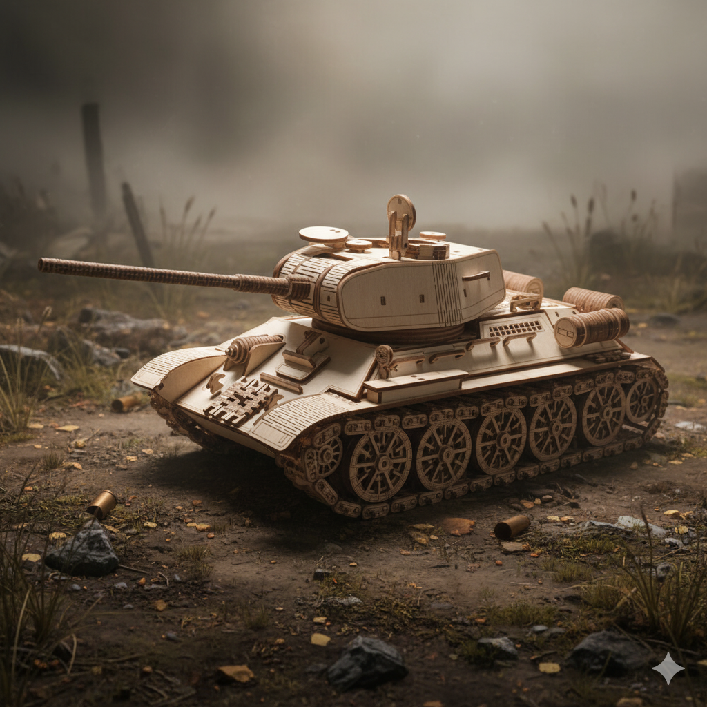 Sukelduge sõjaajalukku tanki T-34-85 puidust 3D puslemudeliga . See mudel on ustav koopia Teise maailmasõja ühest olulisemast tankist, mis mängis lahinguväljadel võtmerolli. Iga osa on täpselt laseriga lõigatud kvaliteetsest naturaalsest puidust, mis tagab täpse sobivuse ja lihtsa kokkupaneku. Selle pusle ökoloogiline aspekt muudab selle ideaalseks ajaloo ja jätkusuutlikkuse austajatele.